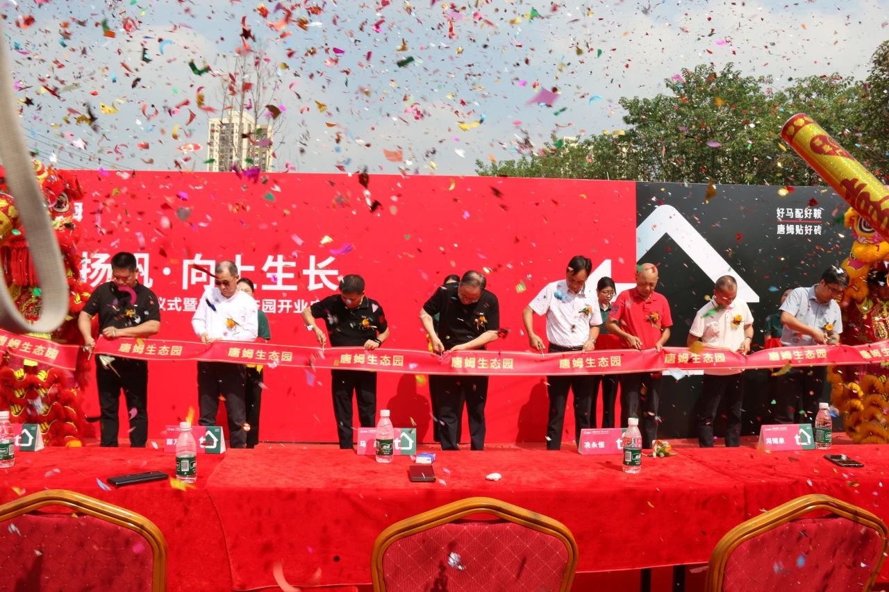 声声炮声震云霄,礼花四溅现美好,领导嘉宾们共同拿起寓意“开金路”的金剪刀为唐姆生态园开业共同剪彩,共同开辟一条辉煌蓬勃的发展之路。剪彩仪式的完成标志着唐姆生态园正式落地,开启唐姆在绿色建材行业上开启新征程、谱写新华章。