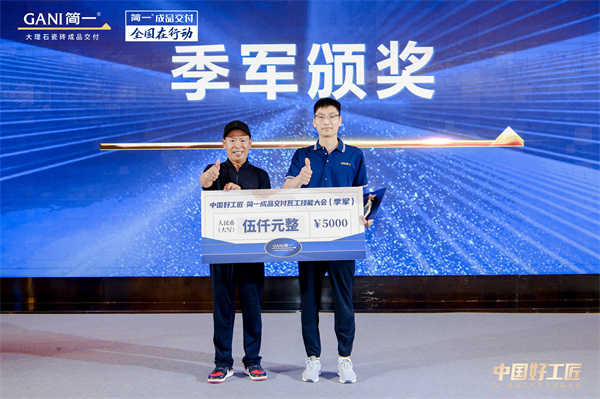5月24日,由中国建筑装饰协会、GANI简一、工匠(北京)俱乐部联合主办,中国建筑卫生陶瓷协会、中国陶瓷工业协会瓷砖粘贴技术专业委员会、亚太酒店设计、美国《室内设计》、东方雨虹、沃能工具作为支持单位,“中国好工匠·简一成品交付瓦工技能大会”在北京北辰五洲皇冠酒店隆重举办。东莞曾纪雄以精湛技艺登上「中国好工匠」冠军宝座,西安何大亮、洛阳王宏强分别获得亚军和季军,武汉彭斌、北京宫能飞分别获得最佳人气奖和用户满意奖。