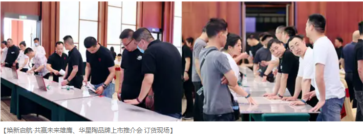 脚踏实地,卯劲前行,雄鹰品牌与华星陶品牌推荐会不仅有高瞻远瞩的战略擘画,还有竞争力十足的产品,产品满足了市场定位和消费者审美需求,经销商们赞不绝口,同时结合实打实的优惠订货政策,现场经销商们一直热情满满,纷纷选样下单,订货的热潮火速蔓延。
