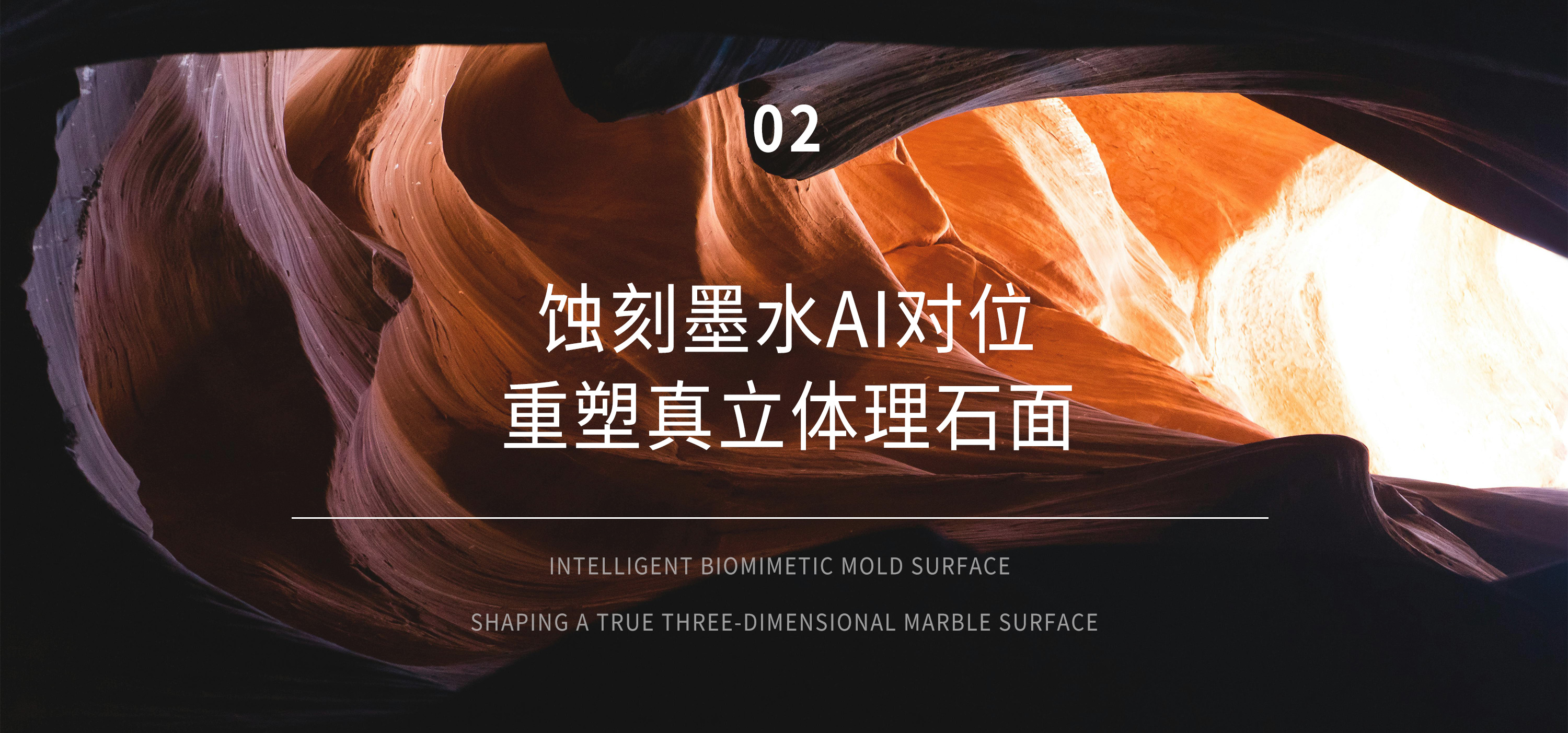 精准对位,凹凸有致。MO范·臻石结合蚀刻墨水+AI智能定位,在胚体和面釉之间,创造真立体理石面,深入0.08mm层层雕琢细节,肌纹精准对位,让丰富的石纹顺着大美山河延伸开来,真正做到肌纹一体的入微效果。